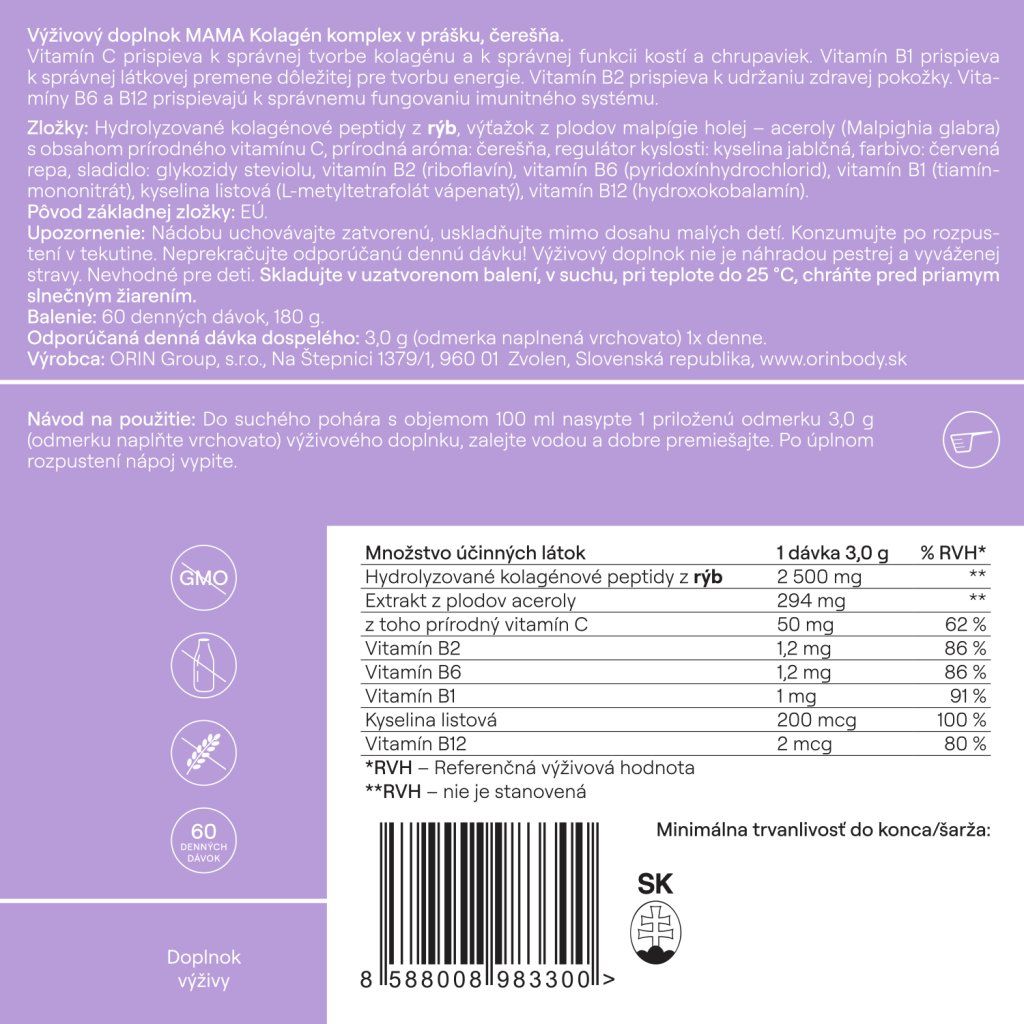 Špeciálne upravená dávka kolagénu (2 500 mg) podporuje elasticitu pokožky, znižuje riziko tvorby strií a pomáha jej lepšie sa prispôsobiť zmenám tela.