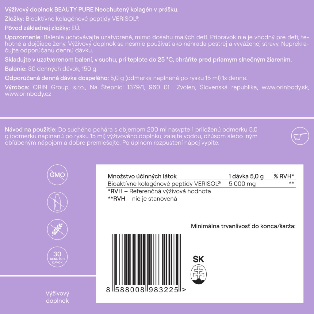 (A35) 3x ORIN BEAUTY PURE neochutený kolagén