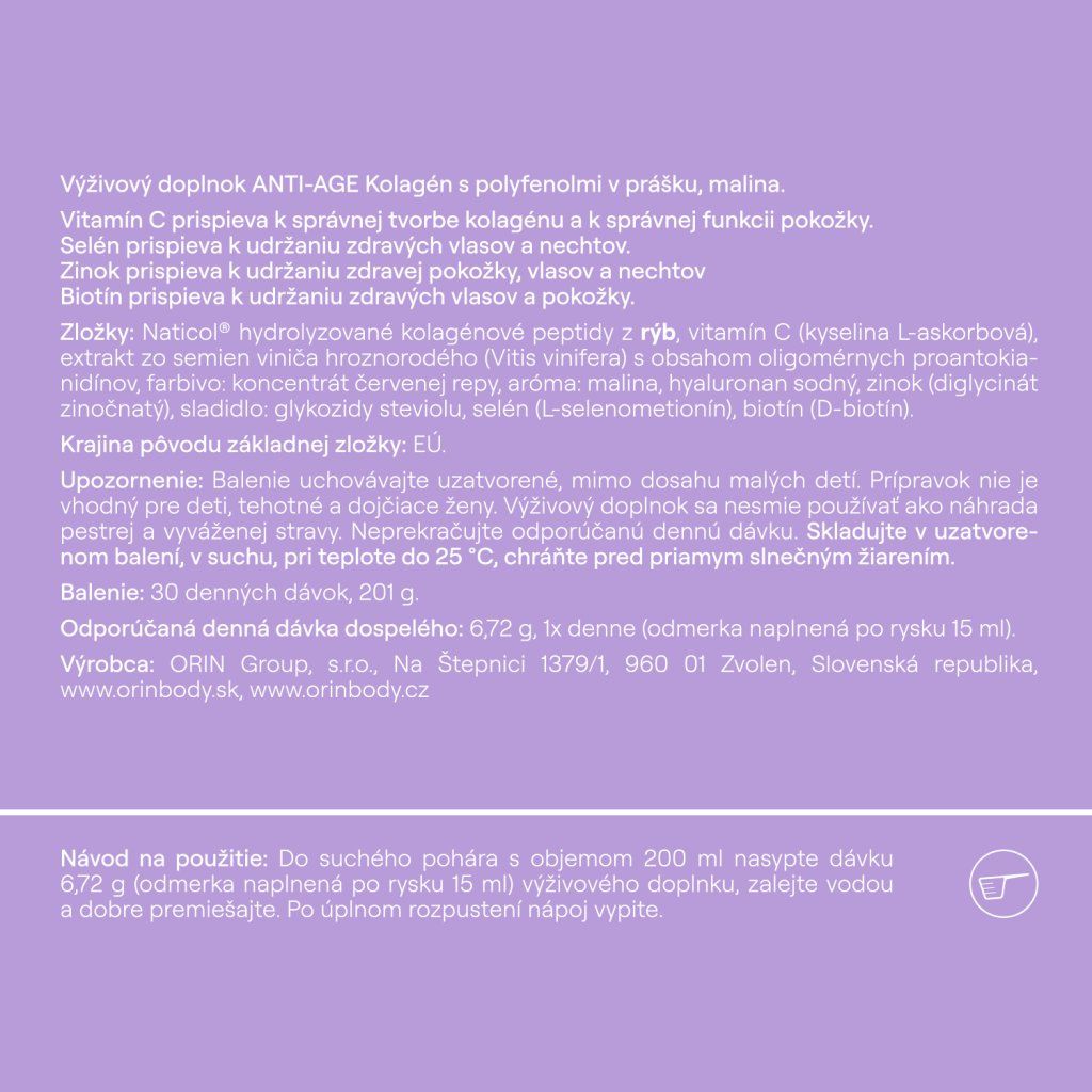 Riešiš vrásky rôznymi krémami, vodičkami či mastičkami? U nás v ORIN Body sme už dávno pochopili, že problémy sa riešia zvnútra. Preto sme vytvorili kolagén, ktorý sme obohatili o polyfenoly. Receptúru sme priamo zamerali na riešenie problémov, ktoré súvisia s našim starnutím. Jedná sa o limitovanú edíciu, ktorú po jej vypredaní už nebudeme ďalej ponúkať.