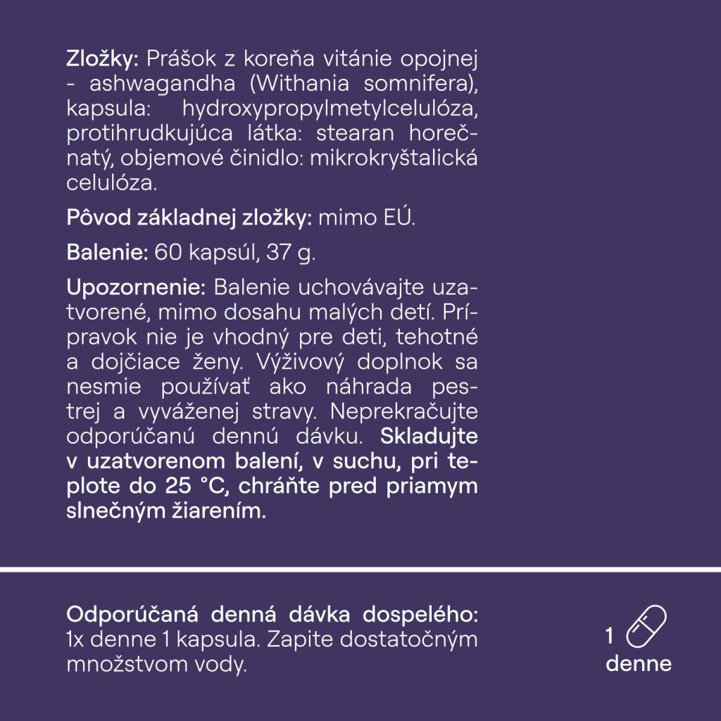 Hodnotenie produktu Ashwagandha za mňa veľmi účinný doplnok, ktorý mi priniesol citeľné riešenie v každodennom živote. Objednala som si znova.