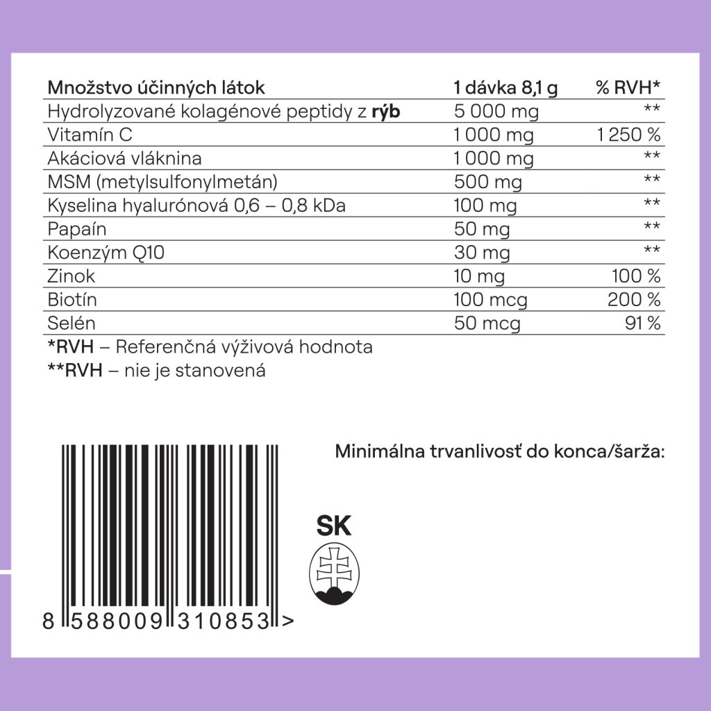 dobrý deň, kolko mg kolagenu obsahuje výrobok (jedna dávka). A aj v ostatných výrobkoch. A ktorý typ kolagenu obsahuje,